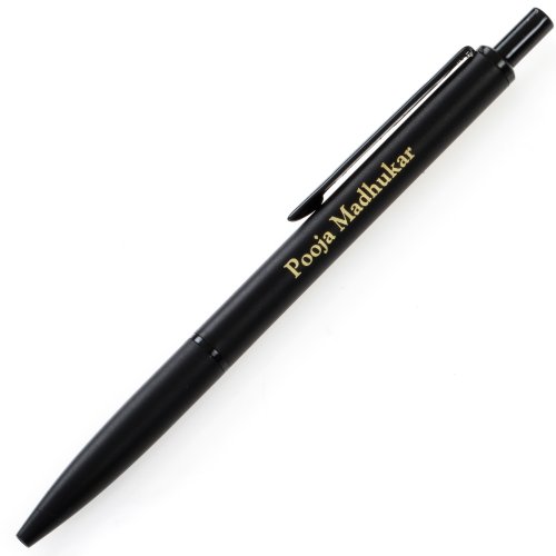 Here's a classic black coated ball point pen. The nib is extended by pressing the top knob. This metal pen comes fitted with refill.The best part is - it can be personalized by engraving name on it as shown in the picture above. Font may vary. Once you place the order - email or call us to give the name to be engraved. Maximum 15 characters accepted. It takes 3-5 working days for us to customize the pen for you.A luxury, yet affordable gift, this pen speaks volumes about both the giver and the user. Best for Corporate gifting - we take bulk orders also.Best New Year/Valentine Gift-Personalized Classic Metal Engraved Ball Point Pen Feature
