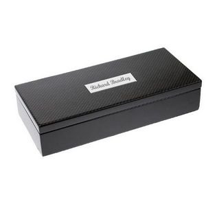 Recognize excellent performance and company accomplishments, as well as valued clients with our sleek carbon fiber pen and letter opener gift set. Handsomely displayed in a polished black lacquer presentation box, this business gift symbolizes the utmost of value and quality. Carbon fiber pen and letter opener each feature elegant silver detailing, which serves as the perfect accent to this upscale gift set. Create an outstanding engraved carbon fiber gift set choice when you add personalization in laser engraving. Include recipient's names, initials or brief message, or your company name and/or corporate logo for a dramatic impression and a truly signature gift that will never be forgotten.Carbon Fiber Pen and Letter Opener Gift Set - Personalized GIft Feature