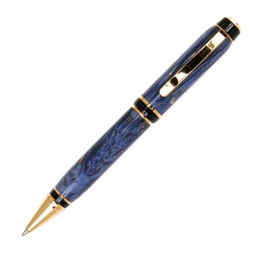 These big, beefy, well-built pens are always a favorite with a body handcrafted out of Blue Maple Burl Burl. Designed with strength and power in mind, the pen still fits your hand with elegance and grace and is packed with a German Made Schmidt P900 Parker Style refill.Cigar Twist Pen - 24kt Gold - Blue Maple Burl Feature