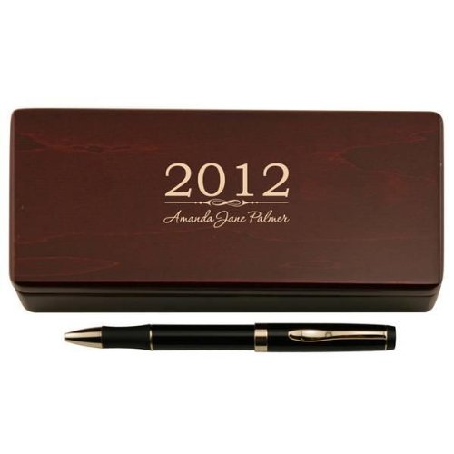 This graduating class pen offers a one-of-a-kind option for a graduation gift, with the ability to personalize a name and graduating year on the beautiful wooden case. The pen also can be personalized, featuring a black lacquer finish with gold detail.Personalized Graduation Gift - Pen Set Feature