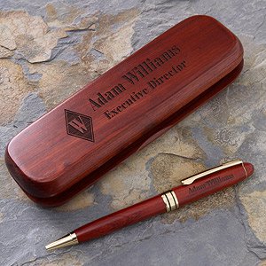 Our finely crafted Rosewood writing instruments are the perfect gifts for any executive - whether they are the new junior assistant or the CEO! We skillfully custom engrave any name and title next to your single initial in the distinguished diamond shape into the top of the Rosewood Case. We also include your name on the quality crafted Rosewood Pen, for an understated and sophisticated look that is all your own.Refills for the pen can be found at any office supply store. Look for Cross® brand ballpoint style refill.A unique gift for birthdays, graduations, retirement, and corporate gifts...bridal party gifts as well!B0036PXR38ASIN