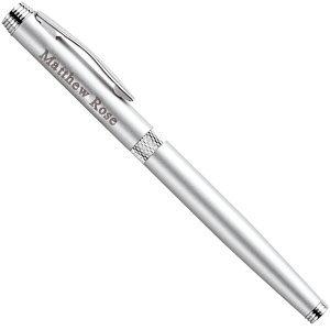 Personalized Valentines Day Gift. This sophisticated Silvertone rollerball pen features a matte finish accented with hi-polished trims. Makes a perfect gift for the budding executive, new graduate or as a way to say "thanks" to your groomsmen.Personalize the pen cap with a name or message of your choice. Up to 25 letters and spaces.Personalized Rollerball Pen - Personalized Jewelry Feature