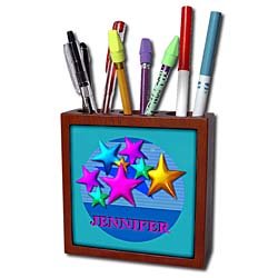SmudgeArt Female Child Name Designs - Vibrant colored stars on a blue background personalized with the name JENNIFER - Tile Pen Holders-5 inch tile pen holder Review