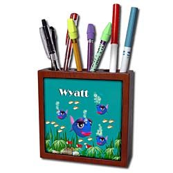 SmudgeArt Male Child Name Design - This vibrant artwork of Fish under the sea is personalized with the name Wyatt - Tile Pen Holders-5 inch tile pen holder Review