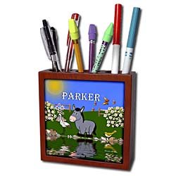 SmudgeArt Male Child Name Design - Decorative donkey and bird art design for children - personalized with the name Parker - Tile Pen Holders-5 inch tile pen holder Review