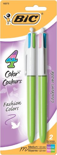 For the female professionals and students looking for several fashionable colors in one multifunction pen, BIC's 4-Color Fashion joins the iconic 4-Color family providing the convenience of four fashion colors in one pen (pink, purple, turquoise, green).BIC 4 Color "Fashion Colors" Medium Point Ball Pen - 2pk (ast) Feature
