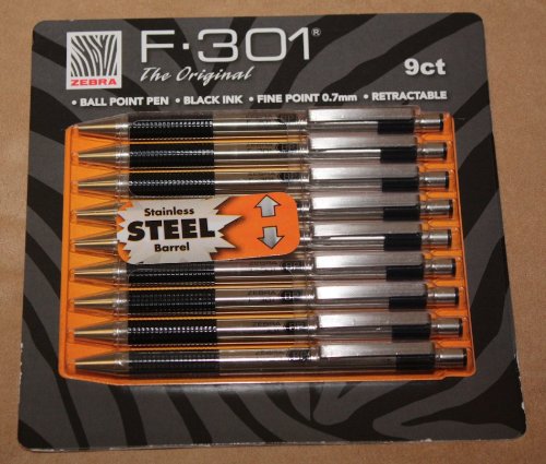 B002JP1AH6Zebra F-301 Retractable Ball Point Pen, Black Ink, Fine Point (0.7mm), Stainless Steel (9-Pack)Item Brand